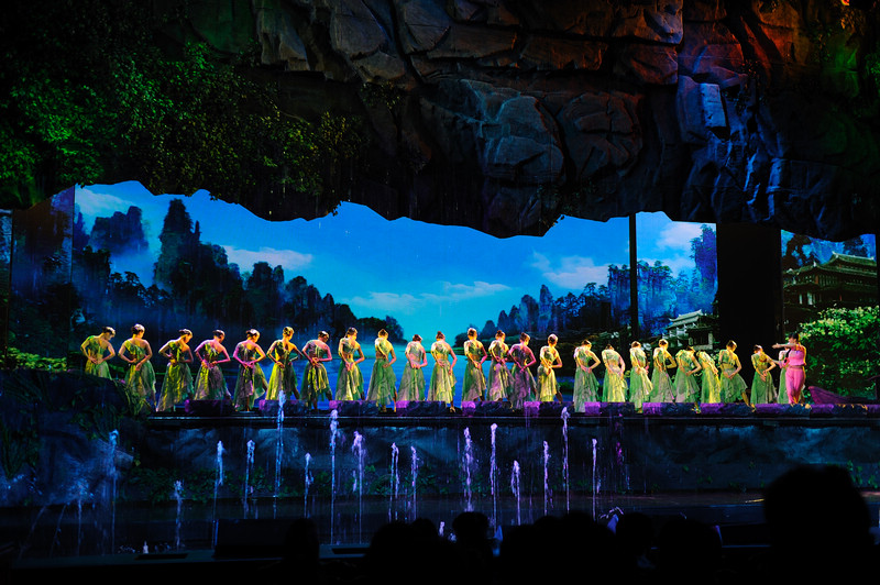 《天門狐仙》:位于張家界市區(qū)的大型山水實景音樂劇,以高山峽谷做舞臺背景、使用頂尖科技舞美燈光音響、融入了張家界獨特的民歌和土家的民俗,將古老的“劉??抽浴眰髡f在美麗的天門山下演繹的淋漓盡致。