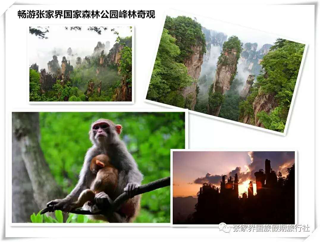 第1天 張家界市區(qū)出發(fā)到森林公園走進(jìn)雄偉壯觀袁家界、天子山景區(qū)和哈利路亞山原型;